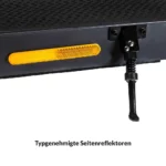 • Beleuchtung: Front- und Heckleuchte, StVZO-konform. Ist ein- und ausschaltbar. Benötigt keine Batterien, wird vom Fahrakku gespeist