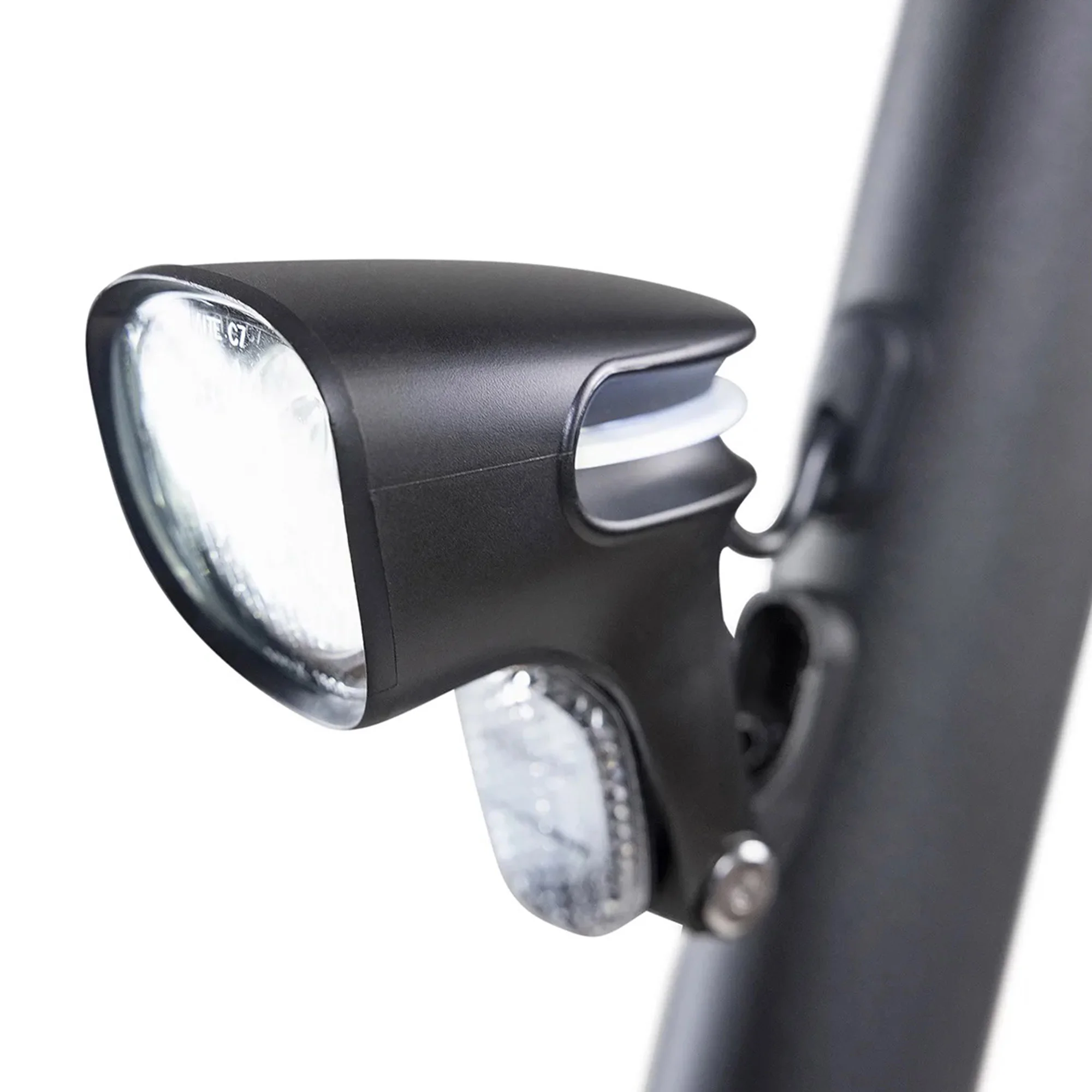 • Licht: Das Frontlicht ist mit 50 Lux Leuchtstärke mehr als dreimal so stark wie beim kleinen Bruder dem ePF-1. Wie gewohnt kann man es von Hand im Leuchtwinkel verstellen. Ganz neu ist ein seitlicher Leuchtring, der dem ePF-2 Fahrer mehr Sicherheit gibt, z.B. wenn er an einer Querstraße vorbeifährt.