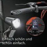 - großes LCD-Display mit Anzeige von Geschwindigkeit, Geschwindigkeitsmodus, Gesamtkilometer, Streckenkilometer, Akkustand und Störungsmeldungen