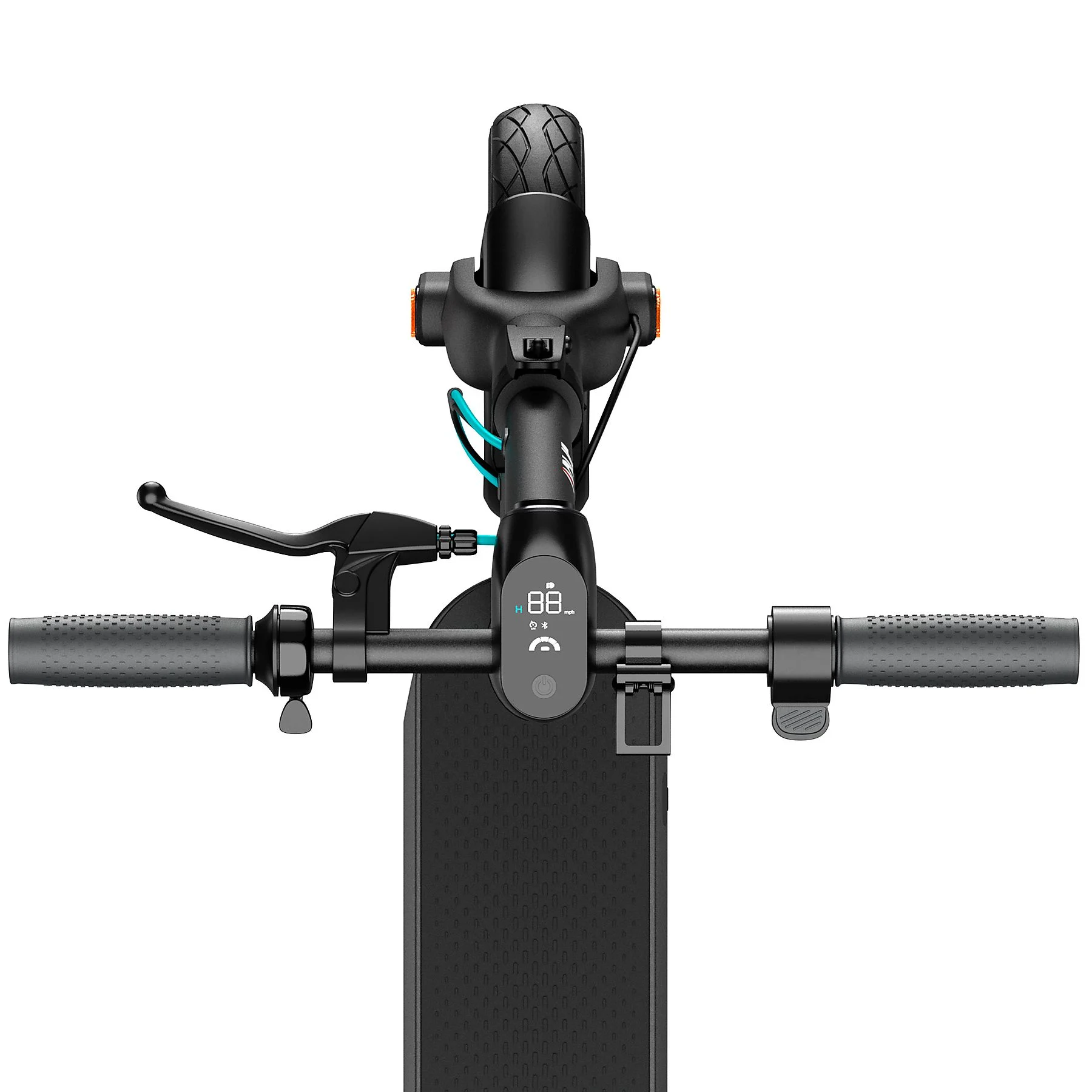 Duales Bremssystem mit Energierückgewinnung, Anzeige für Geschwindigkeit, Batteriestand und Modus, Inklusive App für Android und IOS, App-Funktion: Gerät sperren, Anzeige von Fahr- und Gerätedaten. |