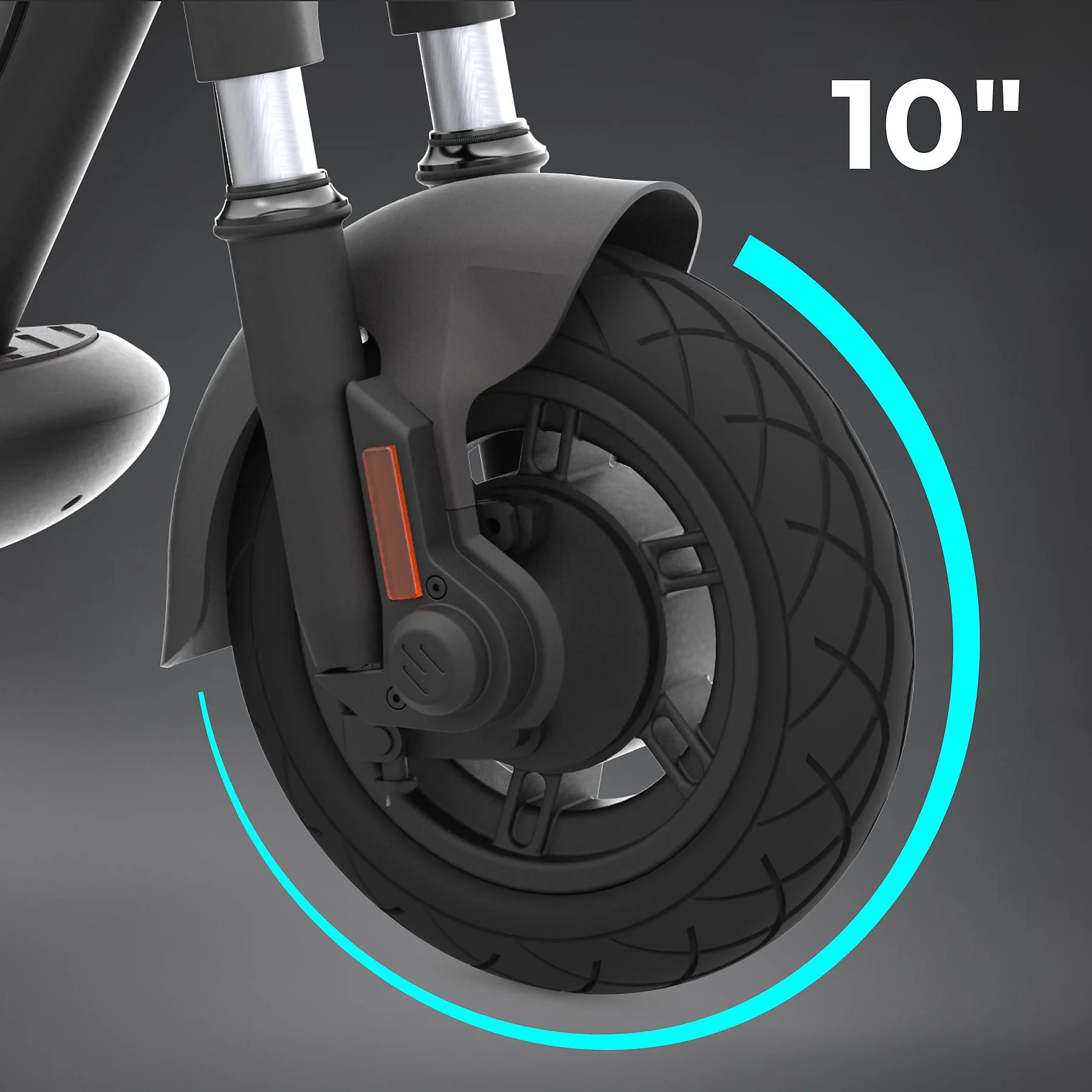 Allseits angenehmes und vor allem sicheres Fahrgefühl dank der 10″ Luftreifen und hydraulischer Federgabel am Vorderrad sowie Spiralfeder am Hinterrad mit denen dein NEO Scooter große Unebenheiten auf deinem Weg abfedert. Damit ist nicht nur eine erschütterungsfreie Fahrt auf ebenen Straßen möglich ist, sondern ebenso bequeme Fahrten auf unbefestigten Strecken auf dem Land wie Schotter, Erde oder Gras. Lass dich auf deiner Zielgeraden von Nichts abbringen.