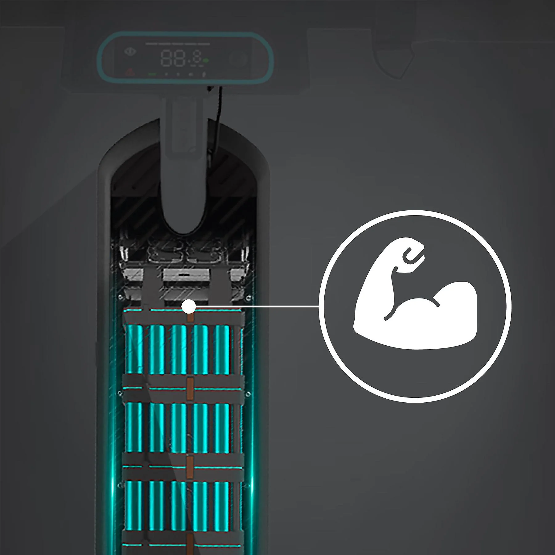 Der sichere & leistungsstarke Lithium-Ionen-Akku mit einer Kapazität von 12500 mAh (675 Wh) bietet dir sichere und beständige Lebensdauer. Bei vollem Akku kommst du unter optimalen Bedingungen mit einer Akkuladung bis zu sage und schreibe 100 km weit. Kein ständiges Aufladen mehr! Ist der Akku dann doch leer, hast du ihn in 7 Stunden wieder voll aufgeladen und kannst den Fahrspaß bis zur nächsten Akkuaufladung wieder genießen, genießen und genießen. Somit auch optimal für weite Pendlerstrecken.