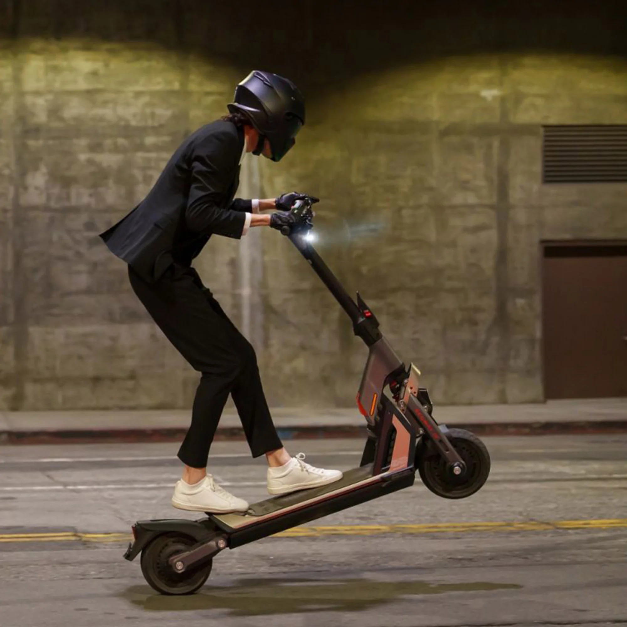 Der Segway KickScooter GT2P bietet eine völlig neue Dimension, in der ein KickScooter das neue Sportgerät sein könnte. Der GT2P verfügt über ein Cyberpunk-Designkonzept und einem Rahmen aus Aluminium in Luftfahrtqualität, der einer maximalen Traglast von 150 kg standhält. Sicherheit ist kein Fremdwort, denn der GT2P KickScooter verfügt über vordere und hintere Scheibenbremsen und selbstdichtenden 11-Zoll-Luftreifen. Der Segway GT2P erreicht eine Geschwindigkeit von bis zu 70 km/h und hat eine Reichweite von ca. 90 km, was ihn zum leistungsstärksten und fortschrittlichsten KickScooter aller Zeiten macht. Mit diesem leistungsstarken und hochmodernen Modell wirst du mit Sicherheit die Blicke auf dich ziehen.